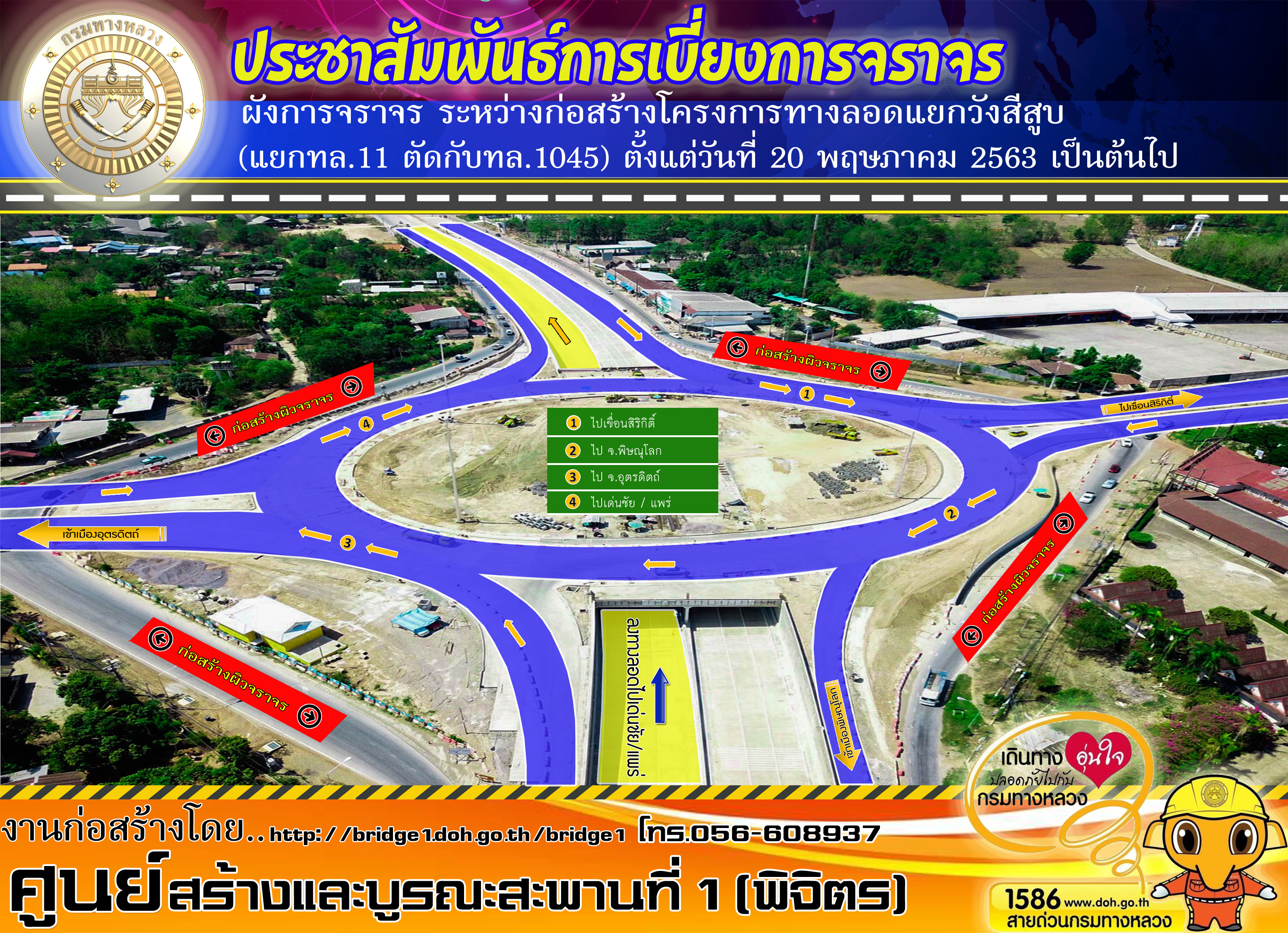 ประกาศ...ประชาสัมพันธ์...ศูนย์สร้างและบูรณะสะพานที่ 1 (พิจิตร) เรื่องผังการจราจร ระหว่างโครงการก่อส้างทางลอดแยกวังสีสูบ