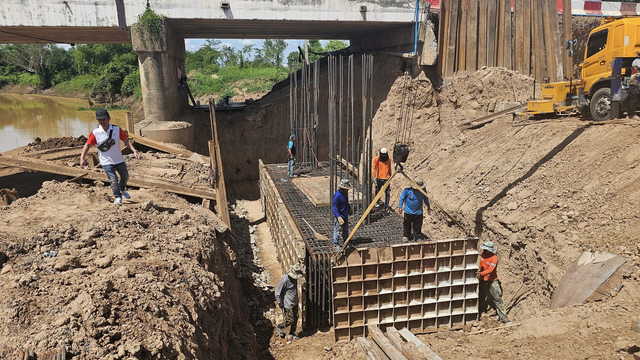 ตรวจงานก่อสร้างสะพานบนทางหลวงหมายเลข 1114 ตอน สันติบันเทิง-บางกระทุ่ม กม.14+936 ทำงานแข่งกับน้ำที่กำลังจะมา เจ้าหน้าที่ ศูนย์สร้างและบูรณะสะพานที่ 1 (พิจิตร)