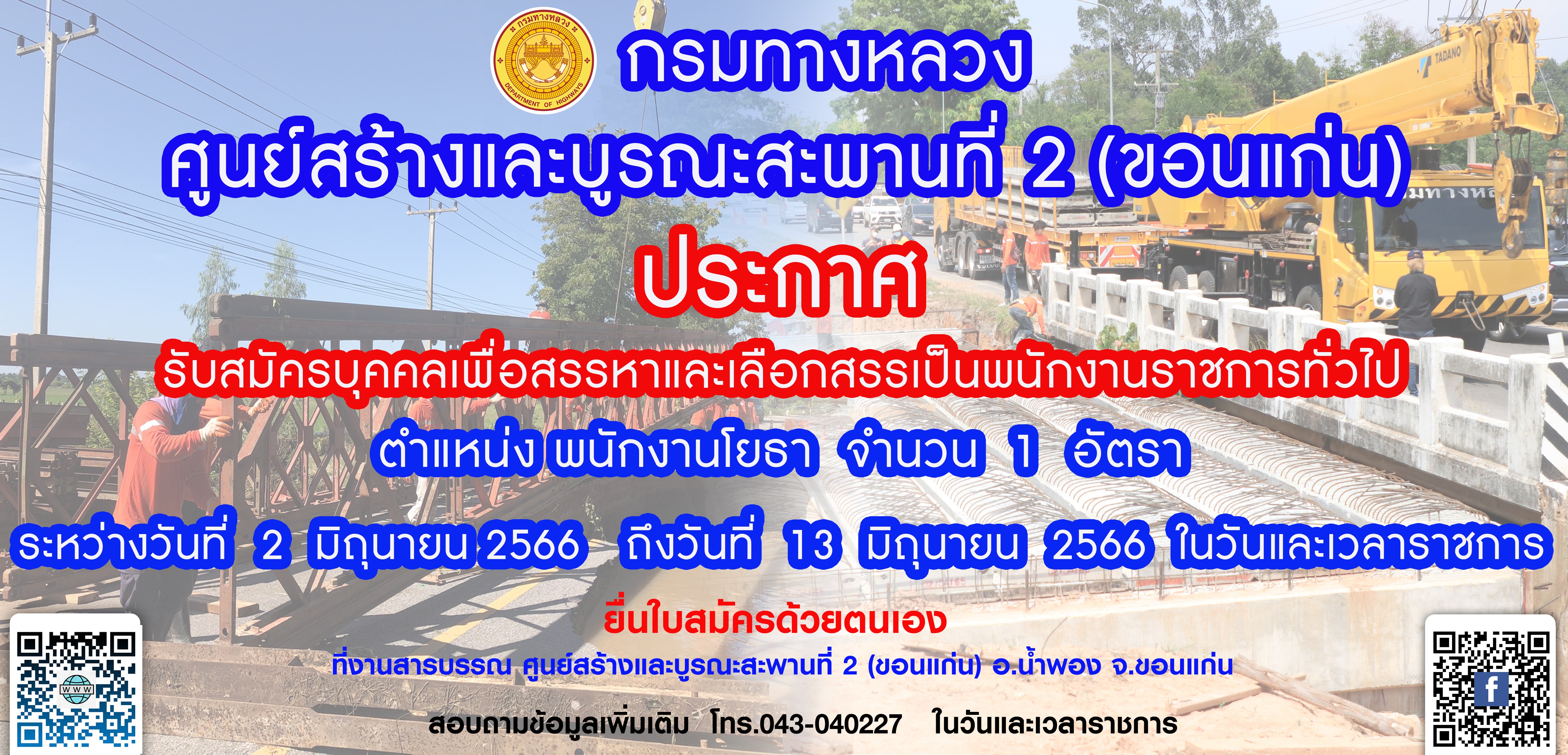 รับสมัครบุคคลเพื่อสรรหาและเลือกสรรเป็นพนักงานราชการทั่วไป ในตำแหน่ง พนักงานโยธา 1 อัตรา