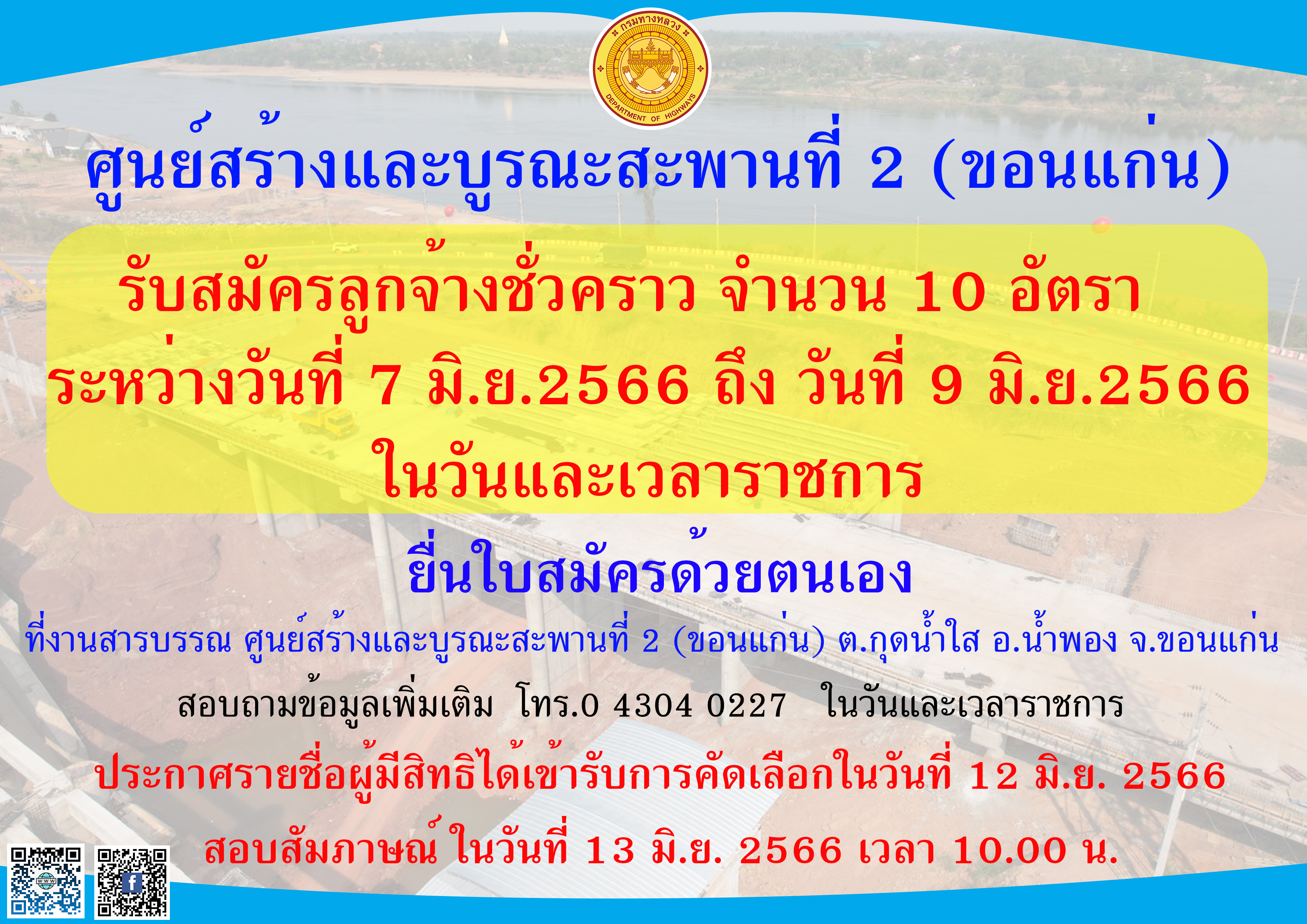 | รับสมัครสอบคัดเลือกลูกจ้งชั่วคราวรายวัน ตำแหน่ง คนงานโยธา เพื่อปฏิบัติงาน ช่างเหล็ก ช่างไม้ ช่างปูน ช่างเชื่อมโลหะ และช่างไฟฟ้า (งานโครงการ และงานเฉพาะกิจ) | 259 | ดาวน์โหลด |