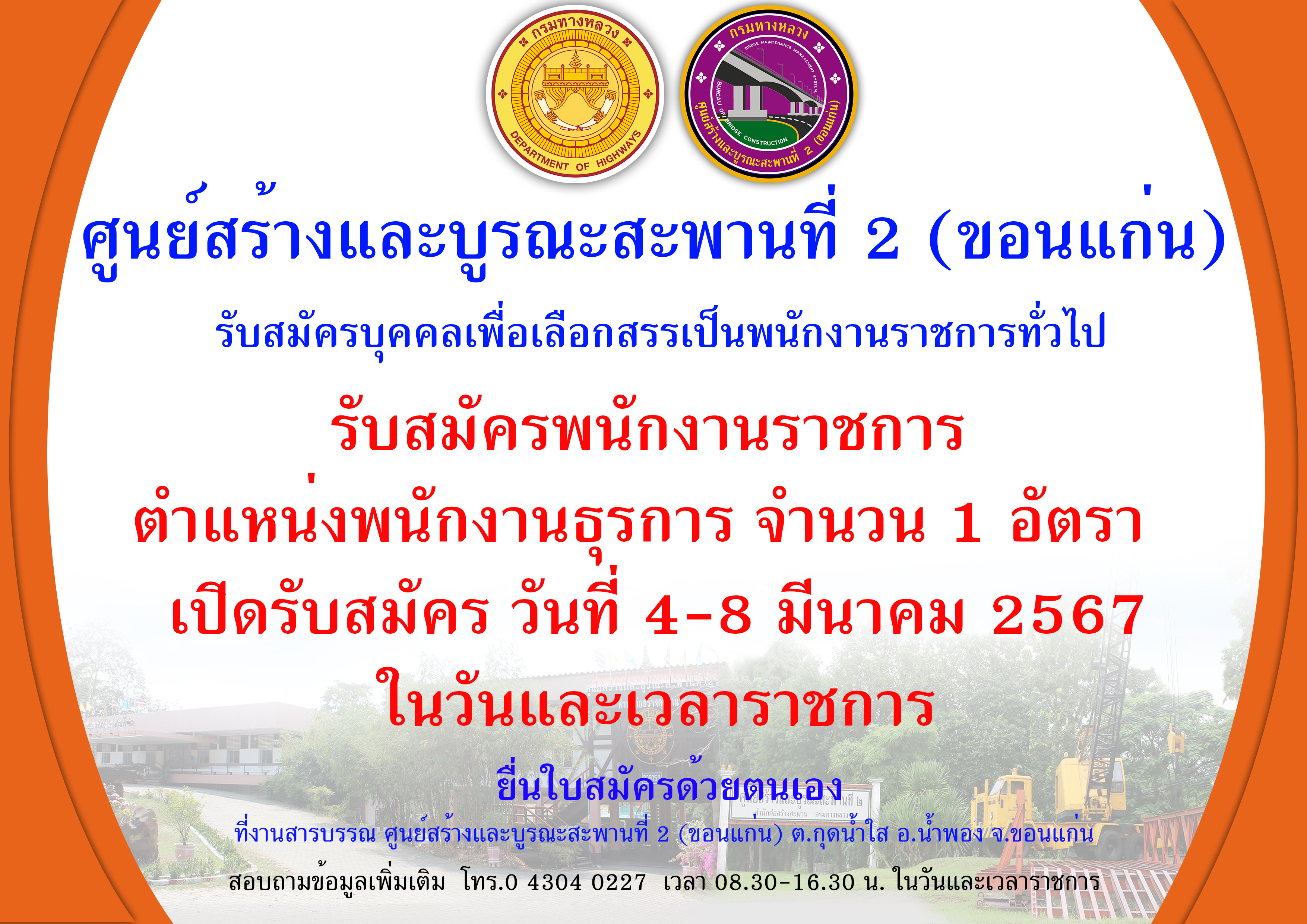 ข้อมูลประกาศรับสมัครพนักงานราชการ : รับสมัครบุคคลเพื่อสรรหาและเลือกสรรเป็นพนักงานราชการทั่วไป ในตำแหน่ง พนักงานธุรการ