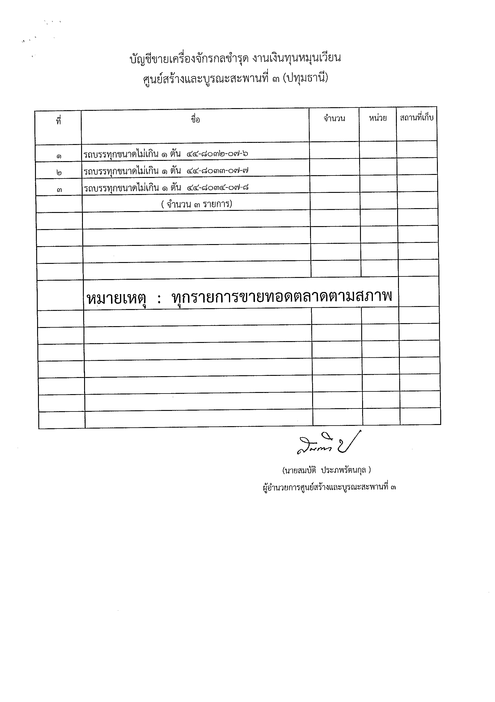 ประกาศขายทอดตลาดเครื่องจักรชำรุด งานเงินทุนหมุนเวียน