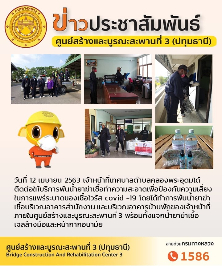 รายงานสถานการณ์ไวรัสโควิด-19 ประจำวันที่ 2 เมษายน 2563 ศูนย์สร้างและบูรณะสะพานที่ 3 (ปทุมธานี)