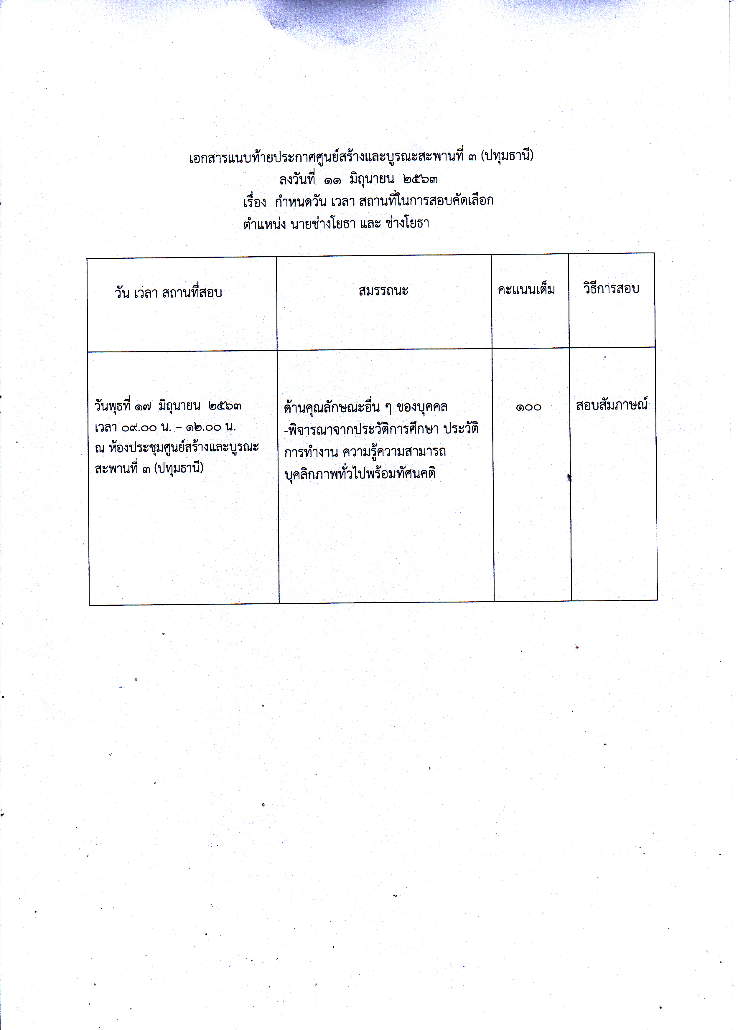 ประกาศรายชื่อผู้มีสิทธเข้ารับการสอบคัดเลือกเป็นลูกจ้างชั่วคราวในตำแหน่ง นายช่างโยธา, ช่างโยธา