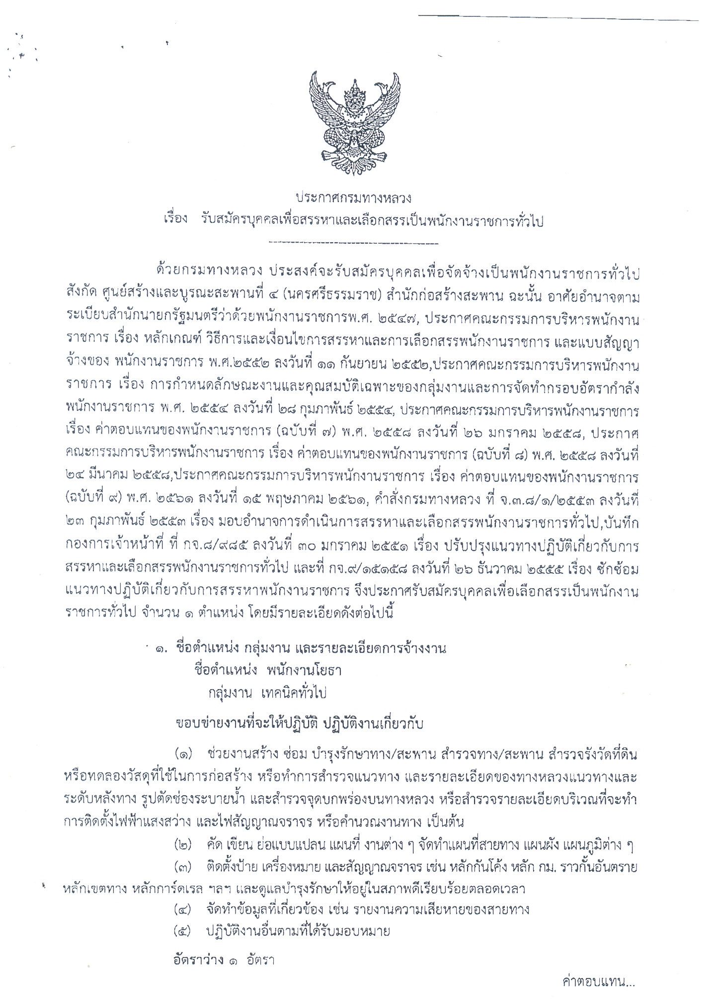 รับสมัครบุคคลเพื่อเลือกสรรเป็นพนักงานราชการ ตำแหน่งพนักงานโยธา