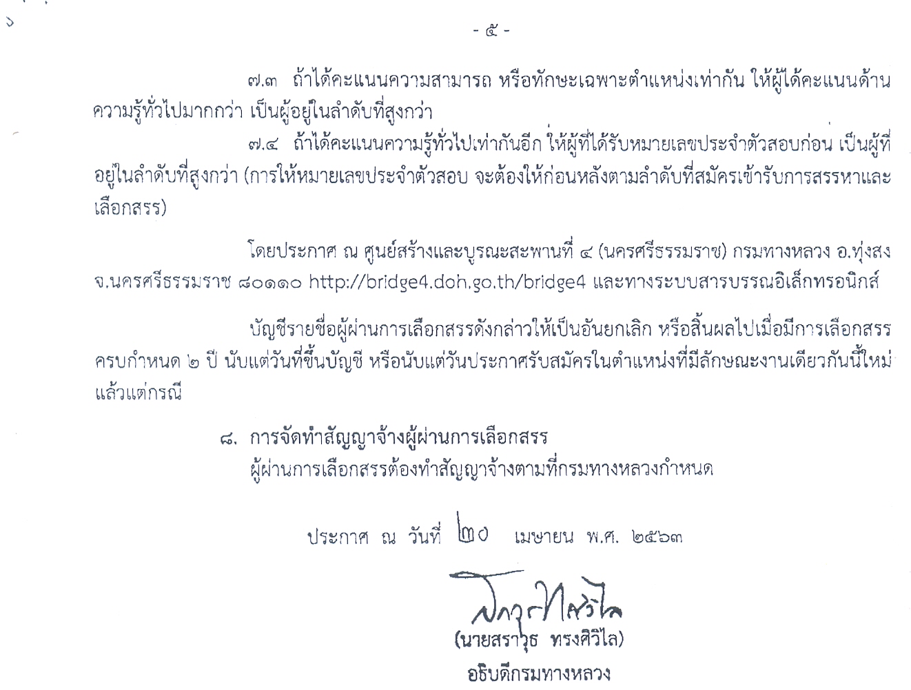 ผู้อำนวยการศูนย์สร้างและบูรณะสะพานที่ 4 (นครศรีธรรมราช)