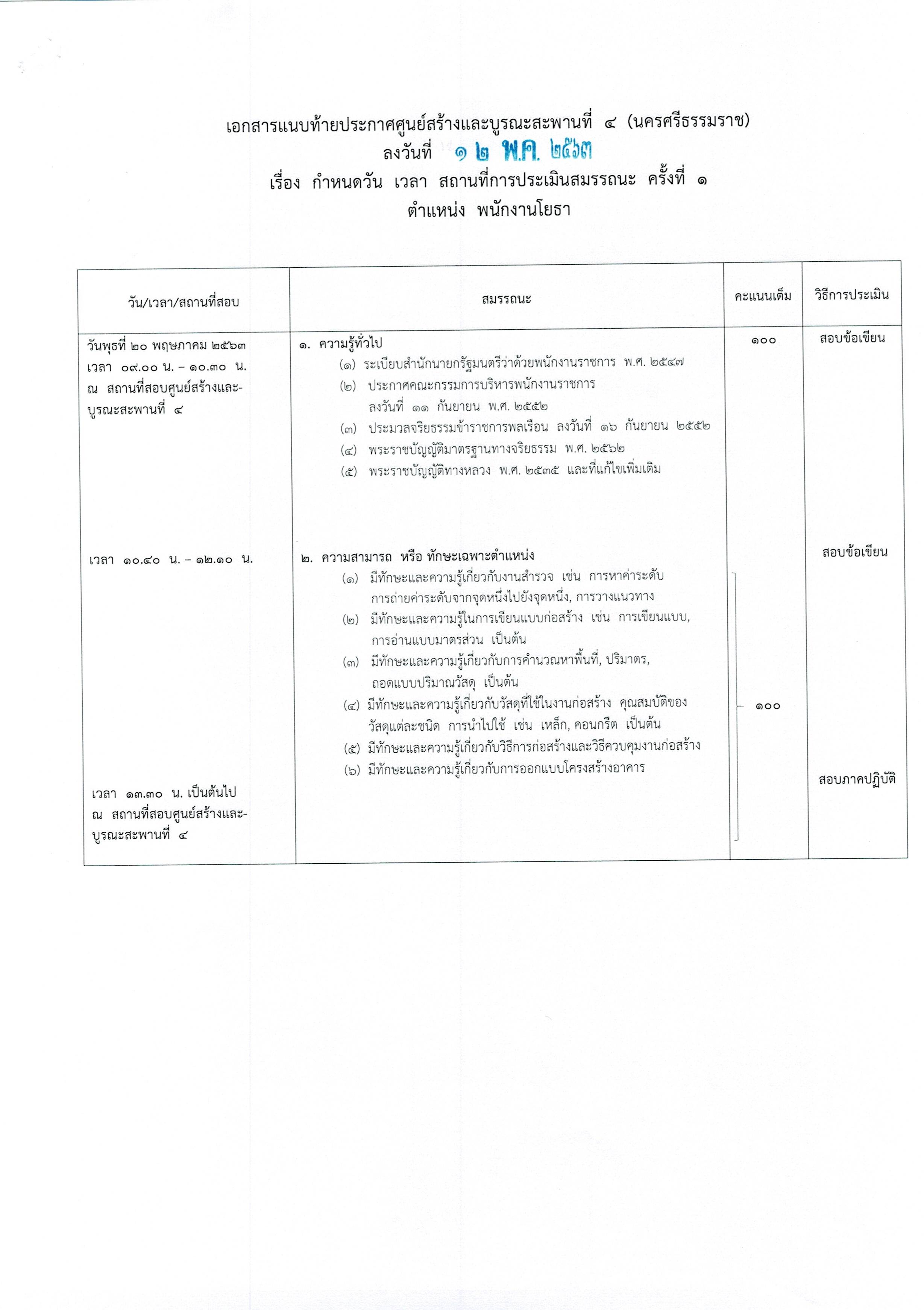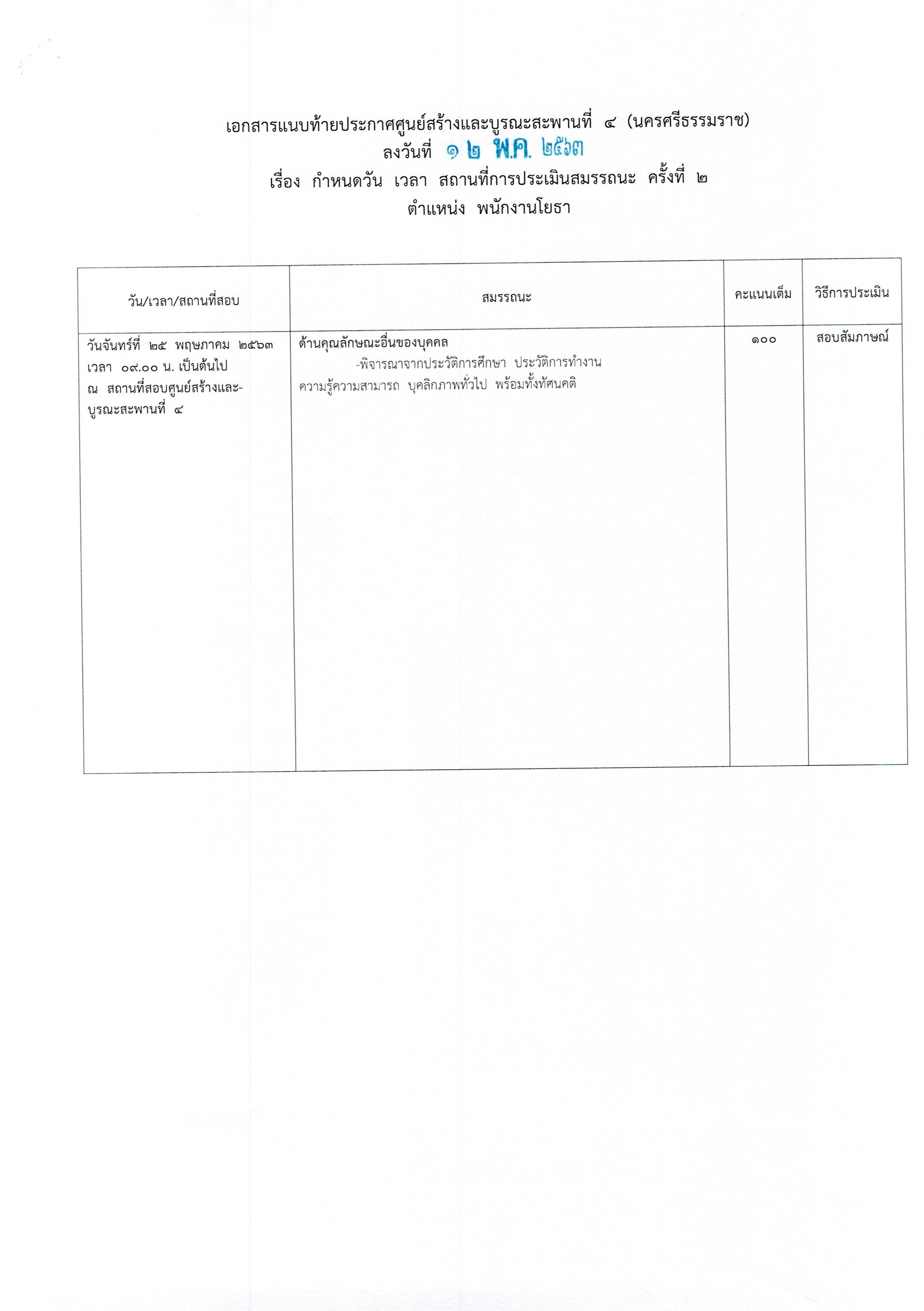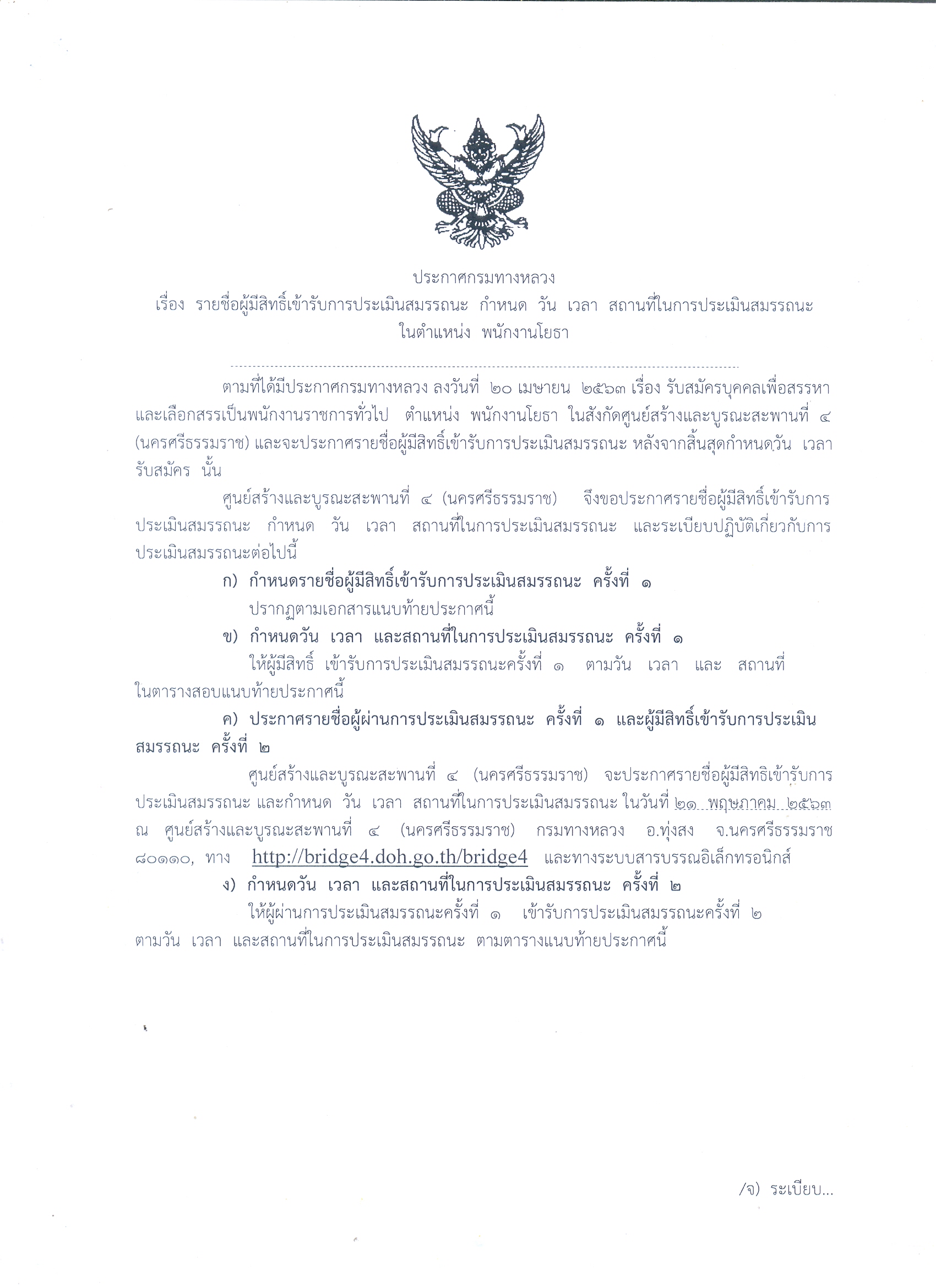 ประกาศรายชื่อผู้มีสิทธิ์เข้ารับการประเมินสมรรถนะในตำแหน่ง พนักงานโยธา