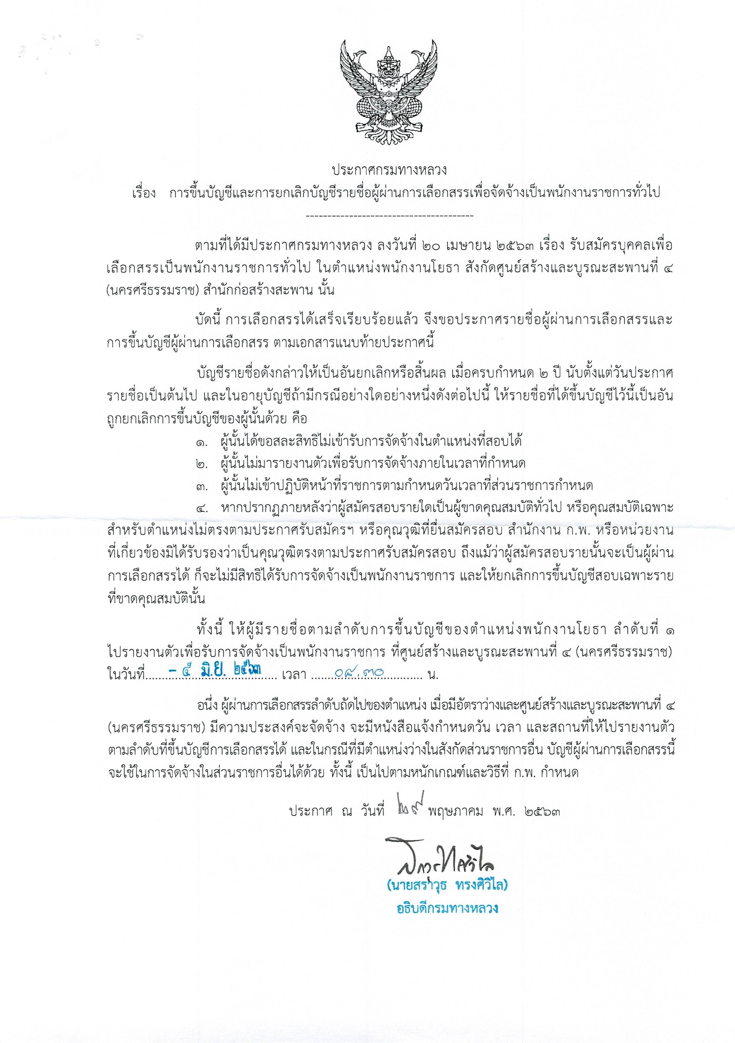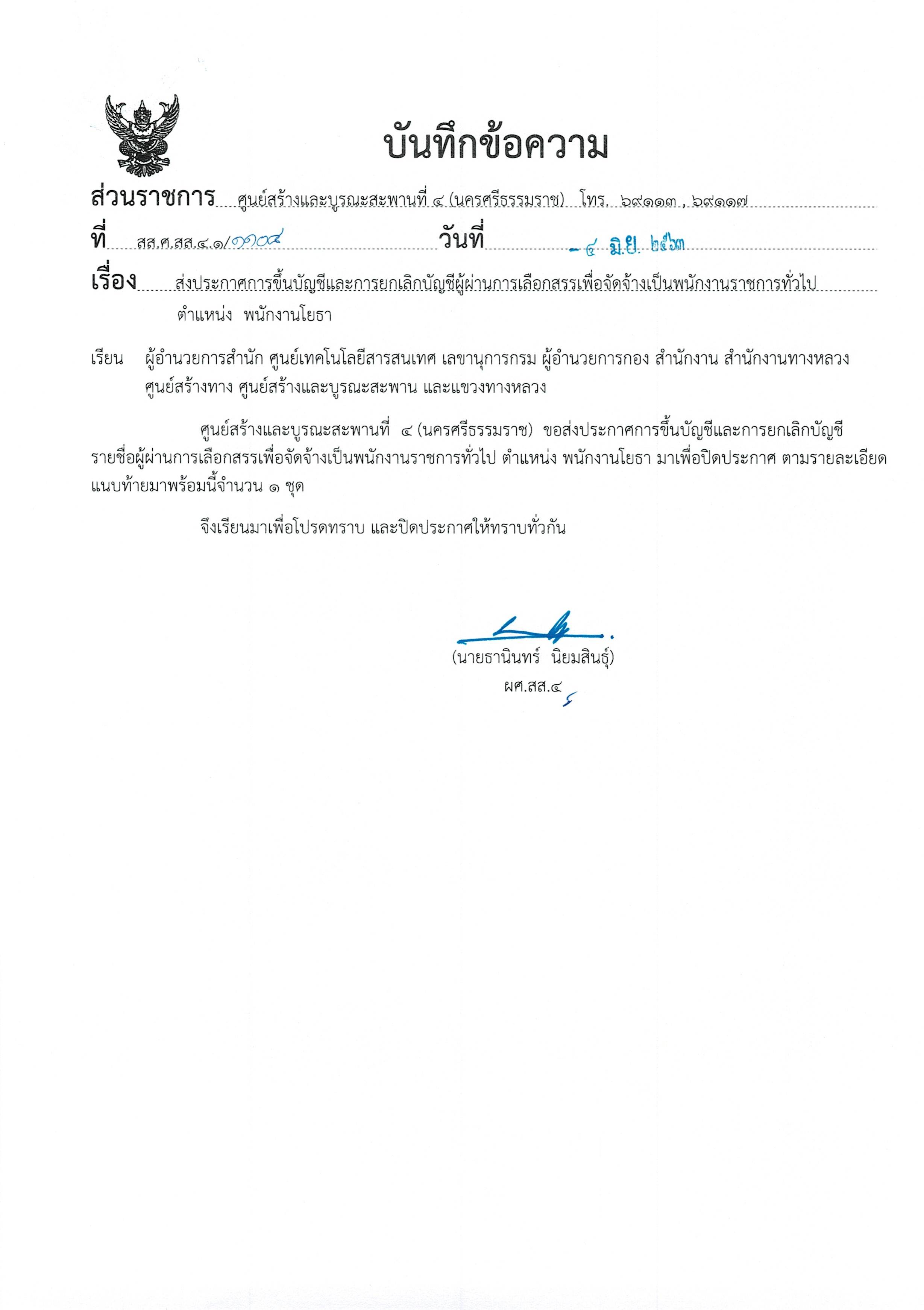 Announcement of the Department of Highways on Registration and Cancellation of the List of Those Who Passed the Selection for General Staff Staffing