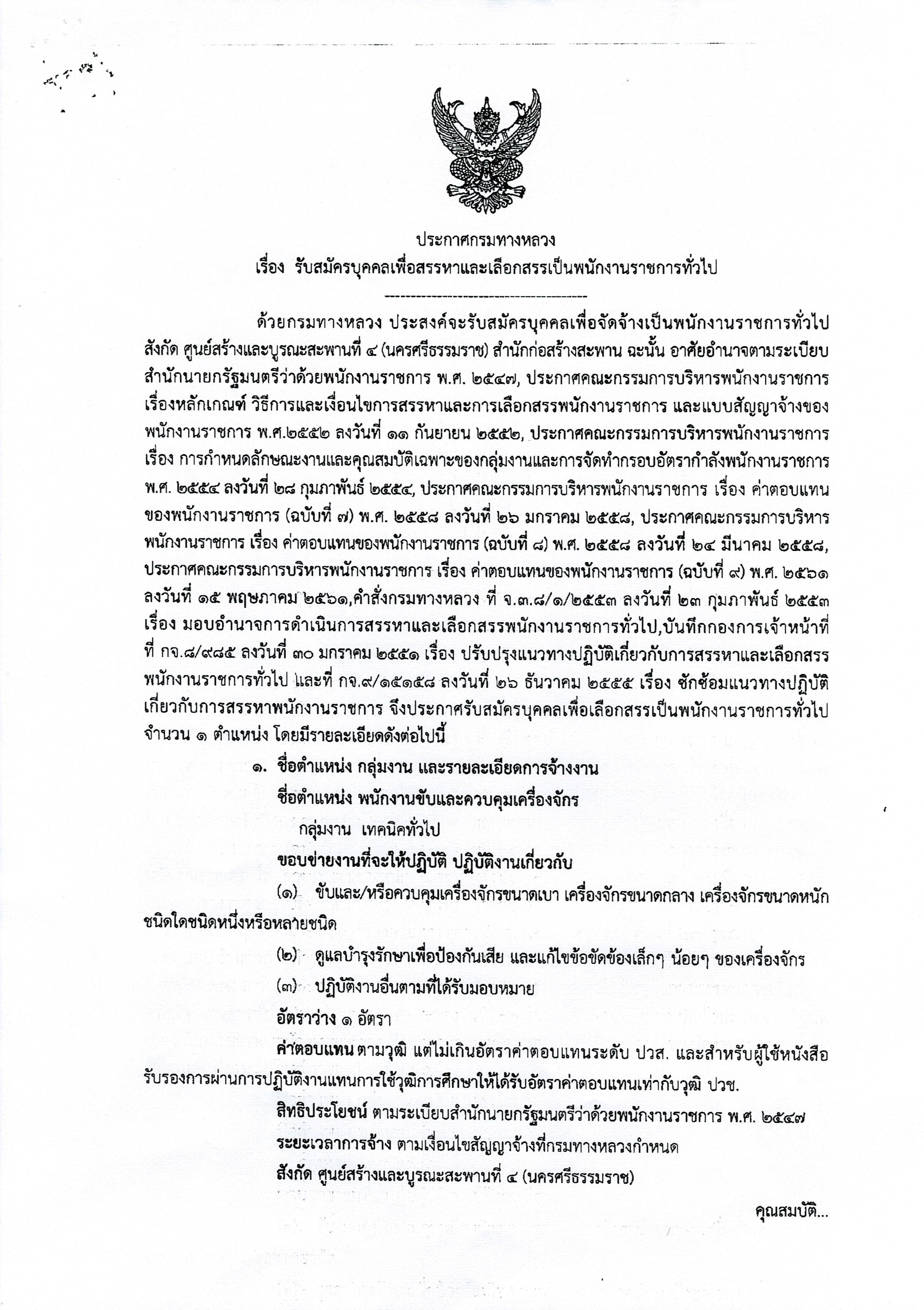 ประกาศรับสมัครบุคคลเพื่อเลือกสรรเป็นพนักงานราชการ