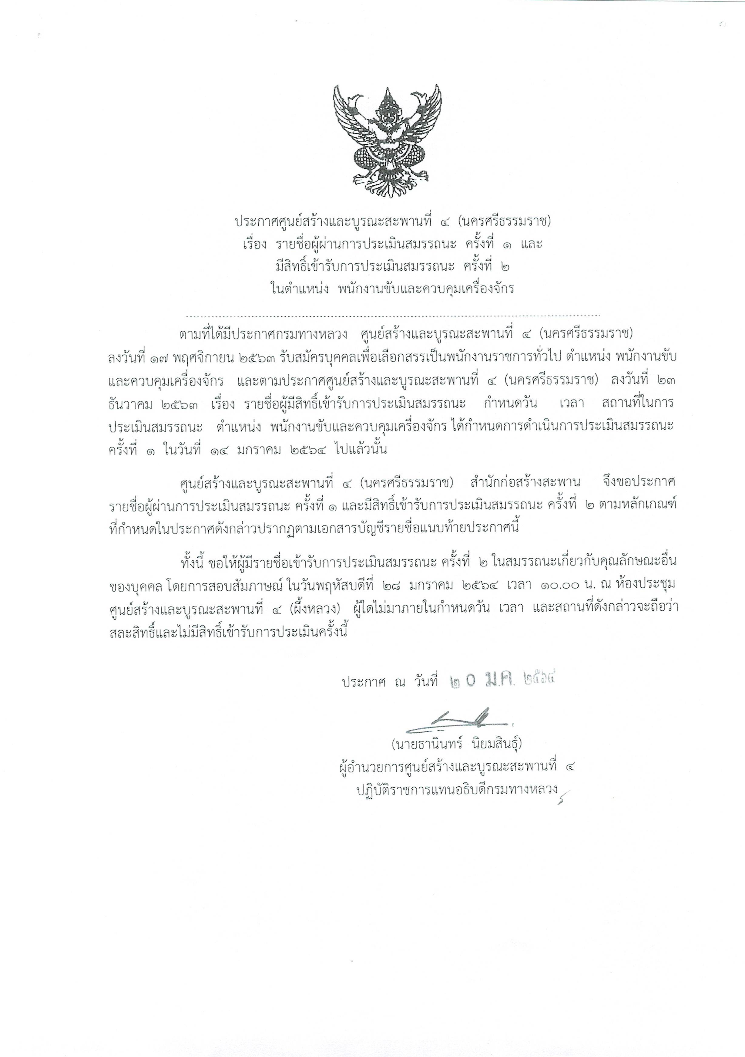 ประกาศรายชื่อผู้ผ่านการประเมินสมรรถนะ ครั้งที่ 1 และมีสิทธิ์เข้ารับการประเมินสมรรถนะครั้งที่ 2