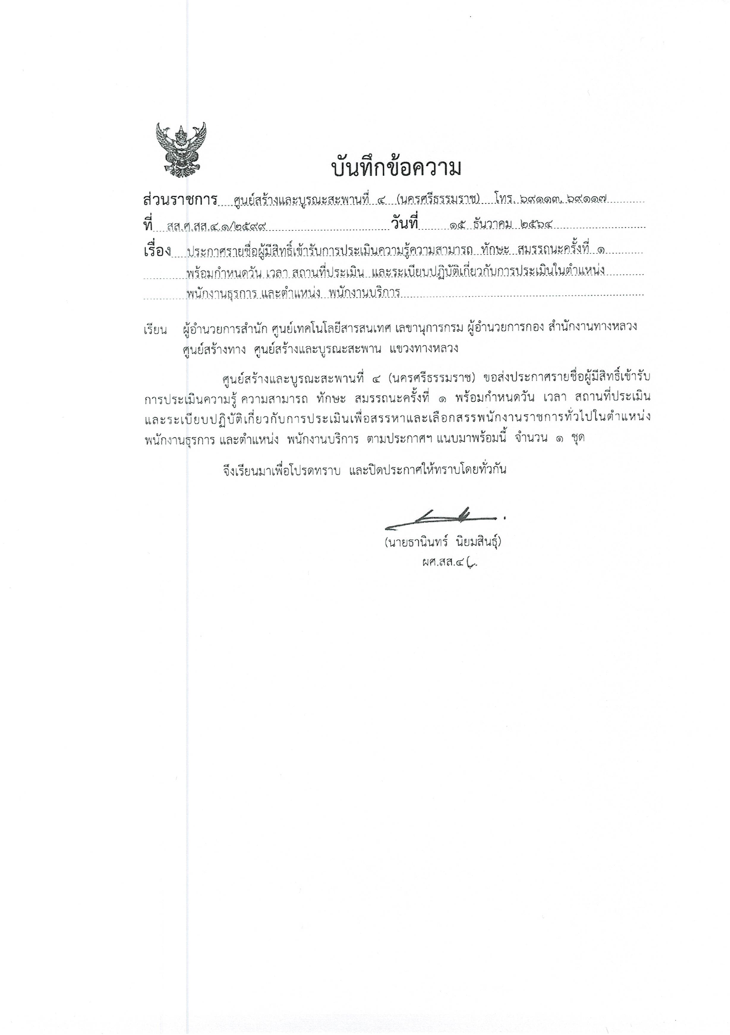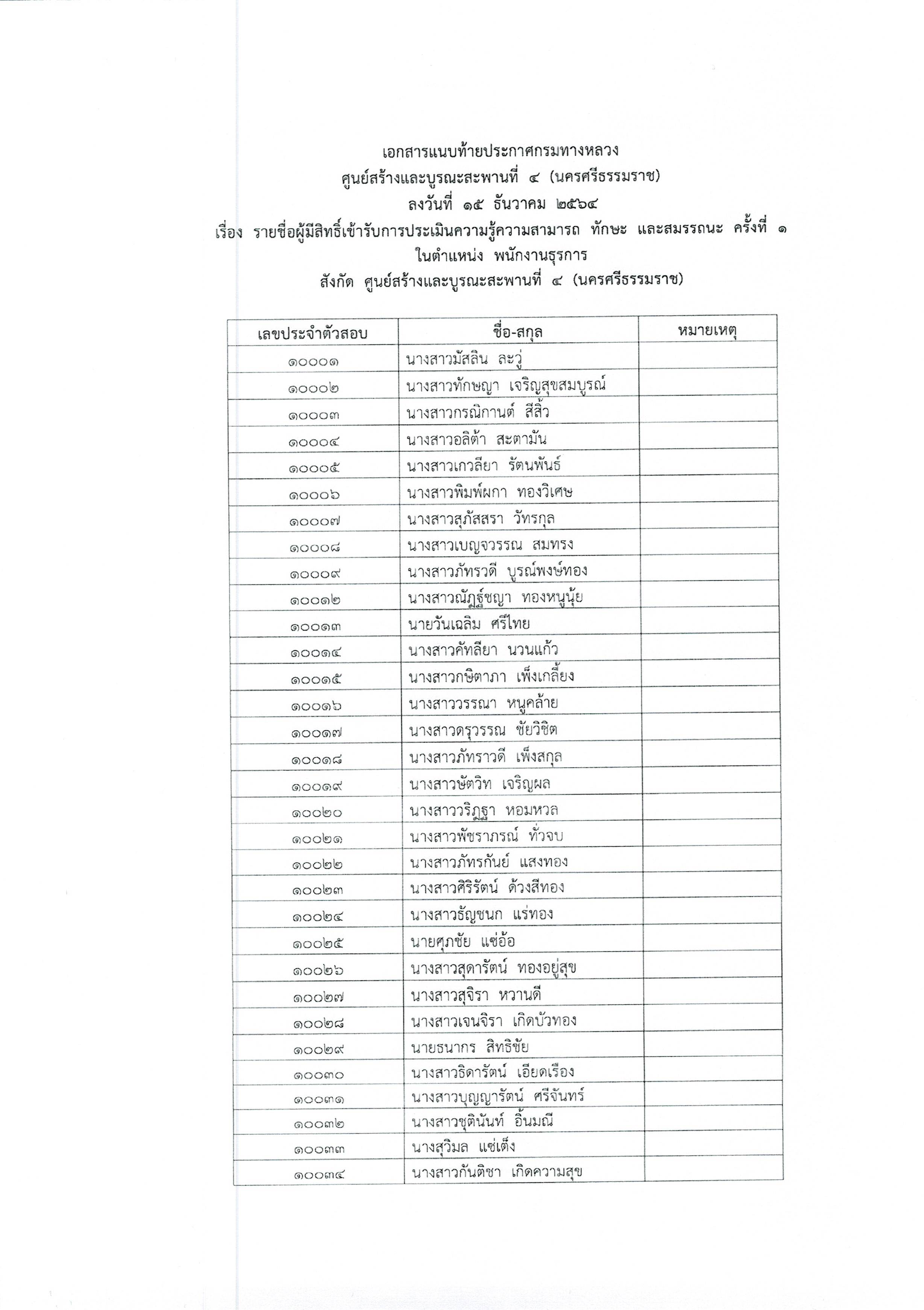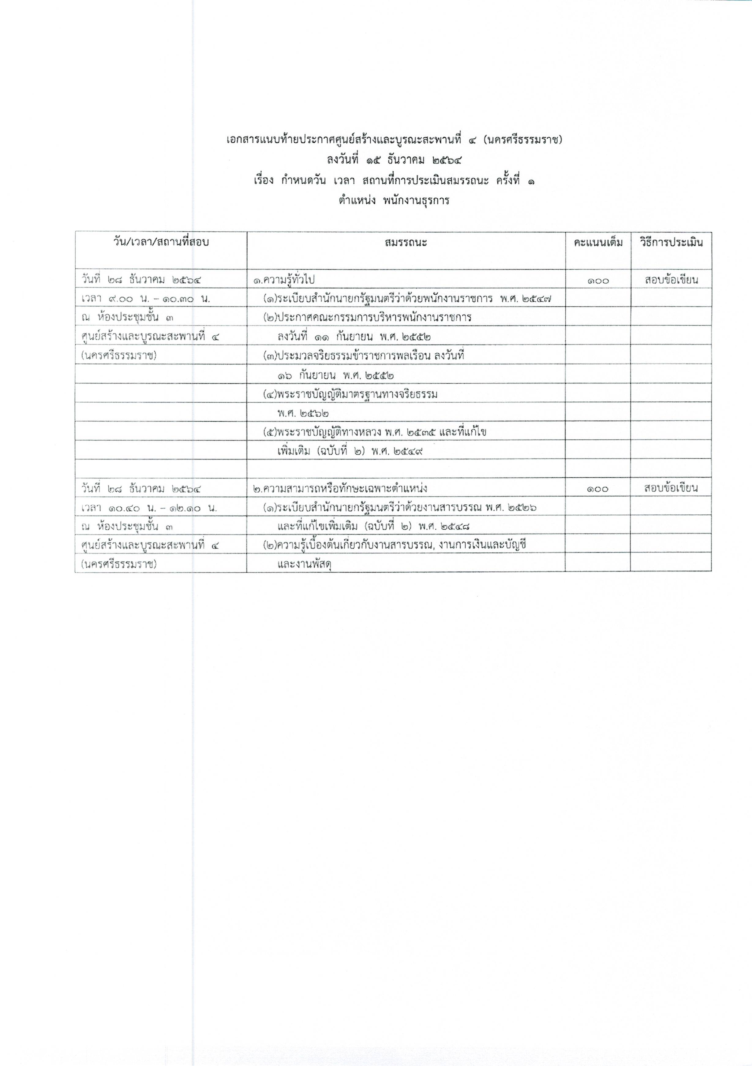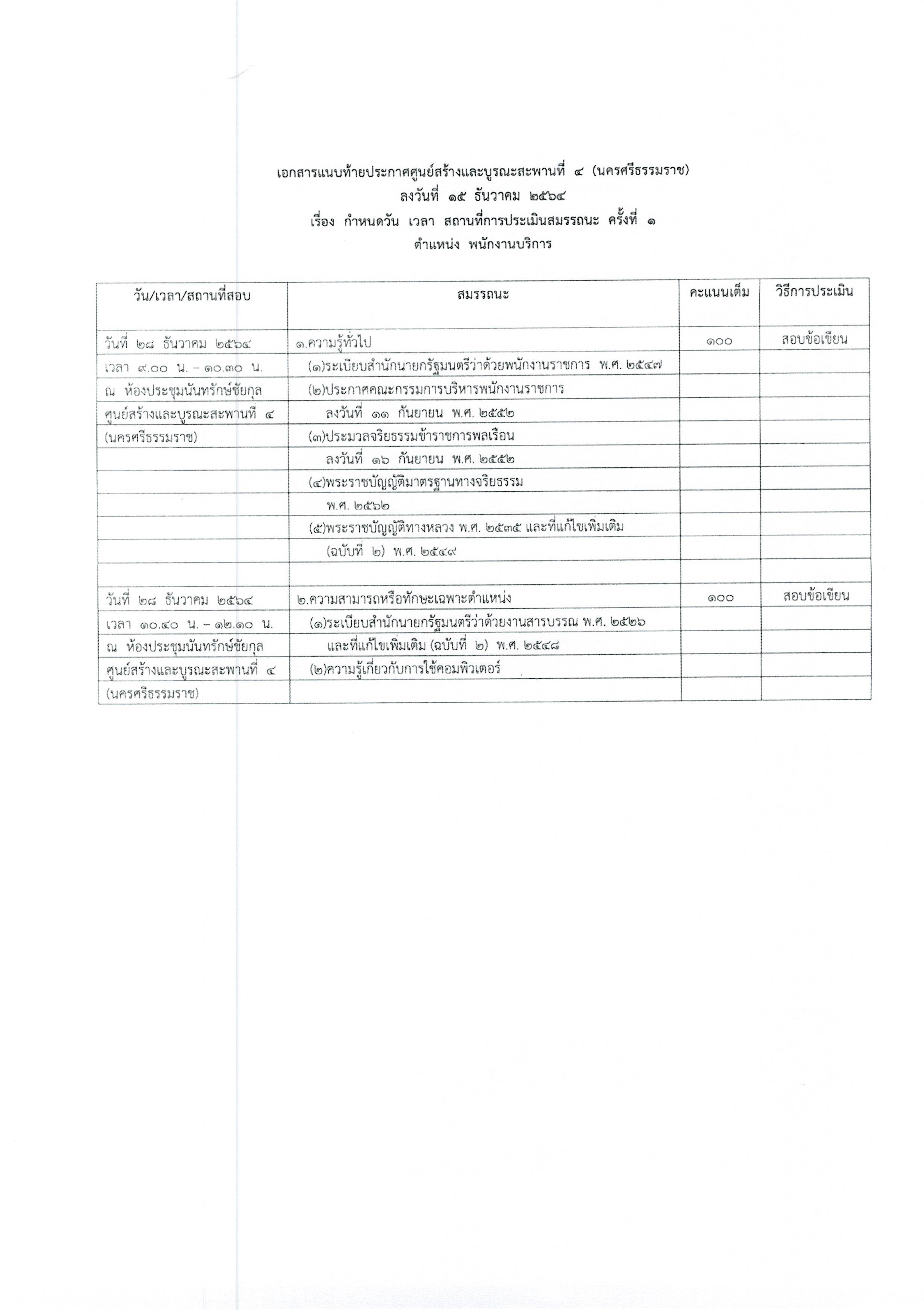ประกาศรายชื่อผู้มีสิทธิ์เข้ารับการประเมินความรู้ความสามารถ ทักษะ สมรรถนะครั้งที่ 1 พร้อมกำหนดวัน เวลา สถานที่ประเมิน และระเบียบปฏิบัติเกี่ยวกับการประเมินในตำแหน่ง พนักงานธุรการ และตำแหน่ง พนักงานบริการ