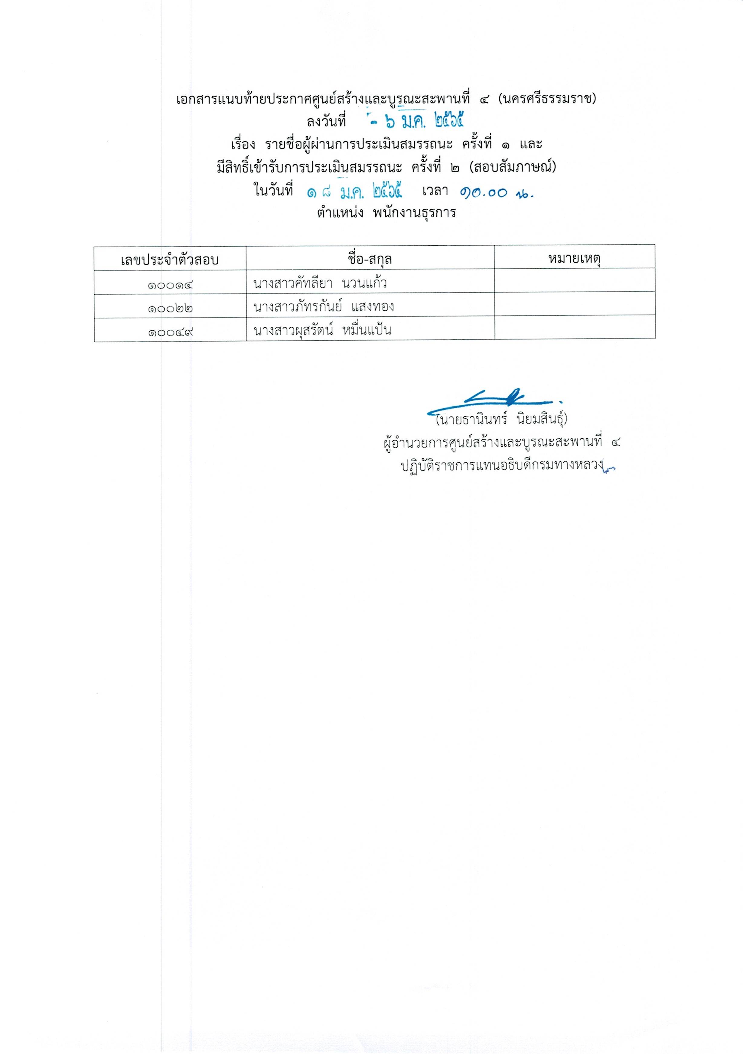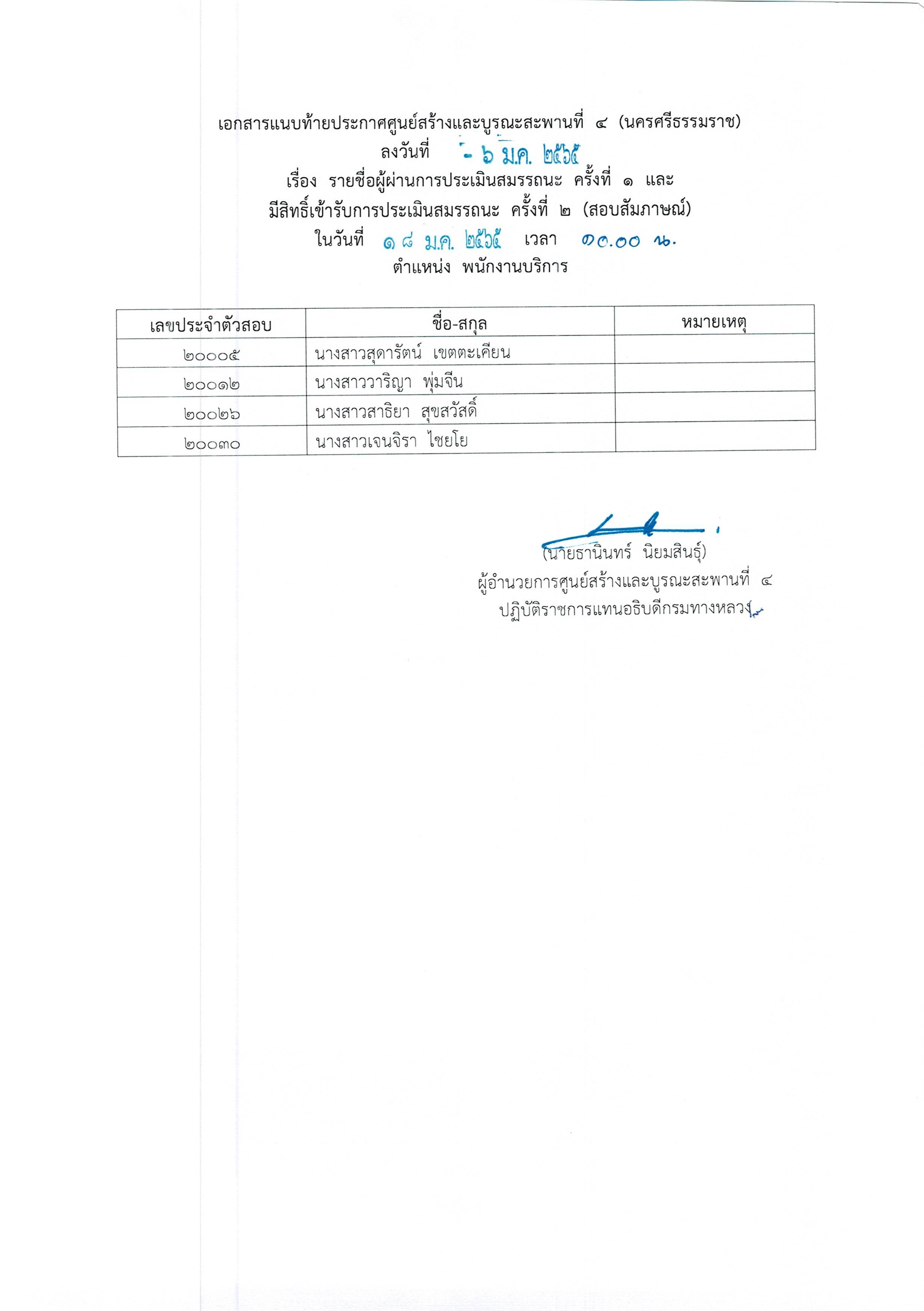 ประกาศรายชื่อผู้ผ่านการประเมินสมรรถนะครั้งที่ 1 และมีสิทธิ์เข้ารับการประเมินสมรรถนะครั้งที่ 2