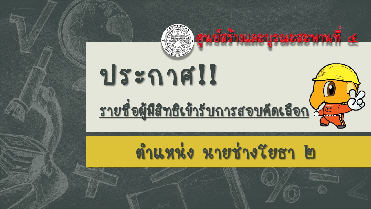 ประกาศ รายชื่่อผู้มีสิทธิเข้ารับการสอบคัดเลือก ในตำแหน่ง นายช่างโยธา 2