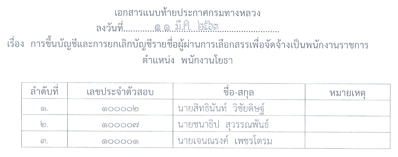 ประกาศกรมทางหลวง เรื่อง การขึ้นบัญชีและการยกเลิกบัญชีรายชื่อผู้ผ่านการเลือกสรรเพื่อจัดจ้างเป้นพนักงานราชการทั่วไป