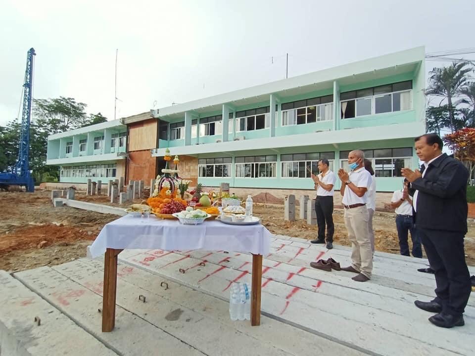 19/6/63 นายธานินทร์ นิยมสินธุ์ ผู้อำนวยการศูนย์ฯ พร้อมด้วยข้าราชการและเจ้าหน้าที่ ร่วมพิธีวางศิลาฤกษ์เสาเอกอาคารสำนักงานหลังใหม่ ณ บริเวณสำนักงานศูนย์ฯ