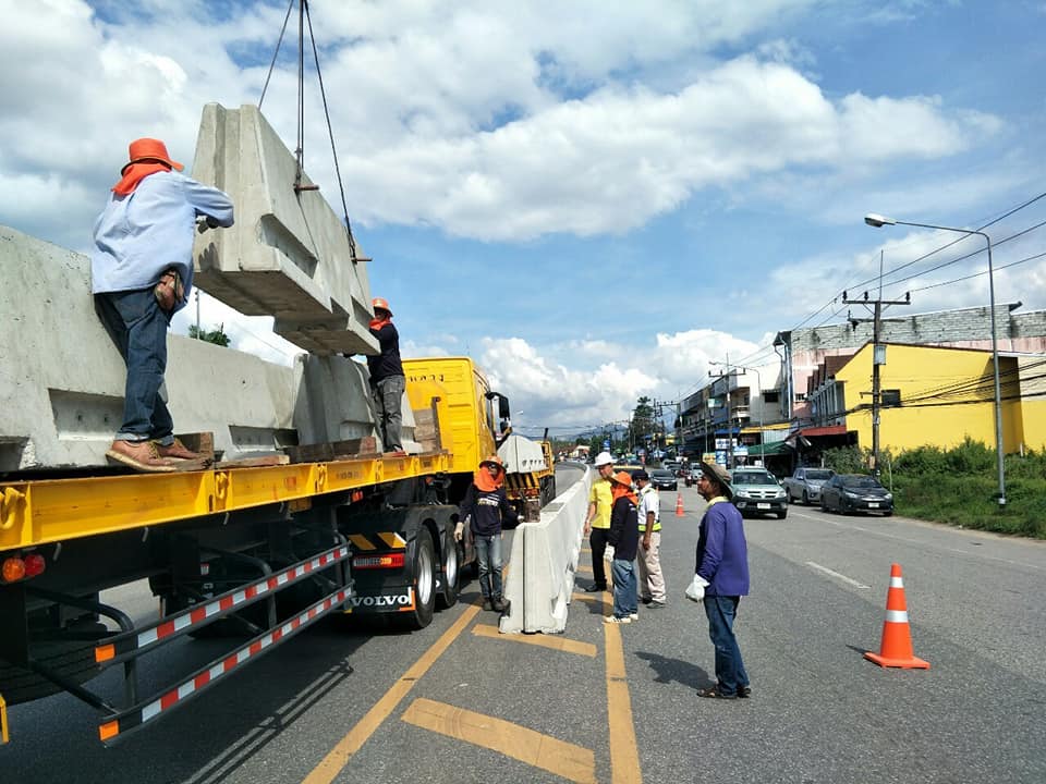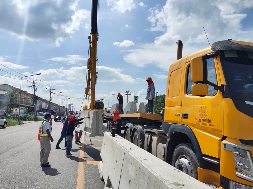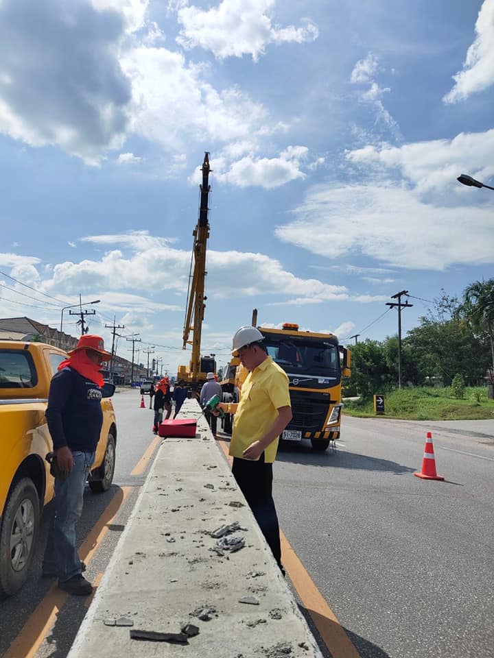 นายธานินทร์ นิยมสินธ์ุ ผู้อำนวยการศูนย์สร้างและบูรณะสะพานที่ 4 มอบหมายให้ นายยุทธนา เสนากัสป์ เข้าดำเนินการติดตั้ง RUBBER FENDER BARRIER ตามโครงการปรับปรุงการแบ่งทิศทางการจราจรเพื่อความปลอดภัย ในทางหลวงหมายเลข 4110 ตอนควบคุม 0100 ตอนทุ่งสง-ทุ่งใหญ่ อ.ทุ่งสง จ.นครศรีธรรมราช