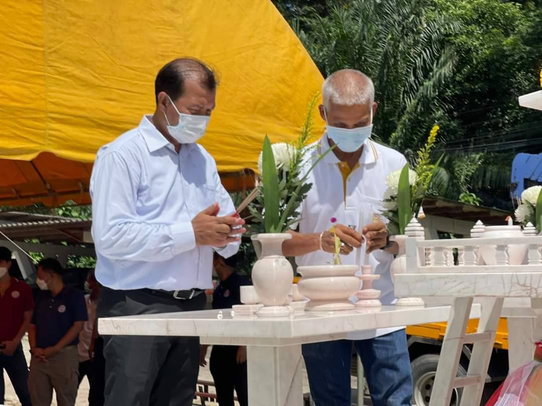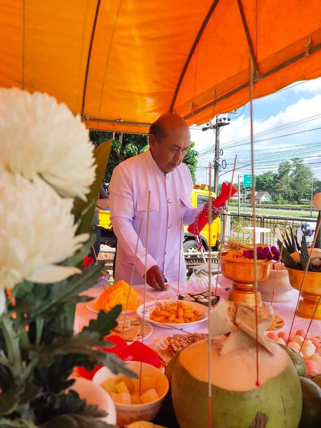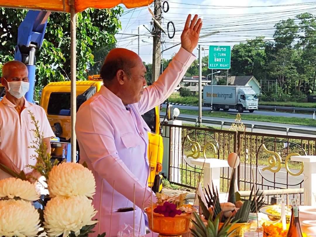 นายธานินทร์ นิยมสินธ์ุ ผู้อำนวยการศูนย์ฯ พร้อมด้วยข้าราชการและเจ้าหน้าที่ ร่วมทำพิธีตั้งศาลพระภูมิ เจ้าที่ ศาลตายายใหม่ ณ บริเวณหน้าอาคารสำนักงานใหม่ ศูนย์สร้างและบูรณะสะพาน ที่ 4 เพื่อความสิริมงคลแก่เจ้าหน้าที่ของศูนย์ฯ